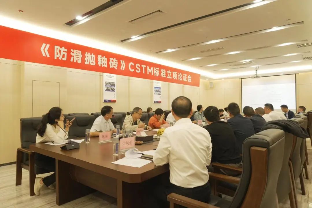 近日,中國材料與試驗標準化委員會(CSTM)建材領域委員會(F03)建筑衛生陶瓷及衛浴制品標準化技術委員會(TC07)組織召開了《防滑拋釉磚》CSTM標準立項論證會。會議由咸陽陶瓷研究設計院標準室主任、TC07秘書長王博主持,論證會的專家和委員有:佛山市質量計量監督檢測中心副主任區卓琨、高級工程師吳清良、佛山海關綜合技術中心教授級高工肖景紅、廣東新明珠陶瓷集團有限公司研究院院長吳建青、廣東東鵬控股股份有限公司品質工程師孔慶福、廣東金牌陶瓷有限公司副總裁張代蘭、佛山市陶瓷研究所控股集團股份有限公司總經理林珊、副院長李家鐸、廣東新中源陶瓷有限公司經理潘榮。參加會議的項目負責起草單位人員有:新濠超防滑大理石瓷磚總經理謝卓彥、廣東昊晟陶瓷有限公司市場部副總經理張爽、工廠生產經理李華強、質檢物流部經理朱風焰、拋光車間主任羅國華、產品研發總監宮成偉、產品研發總監康春生、技術研發負責人許林峰。